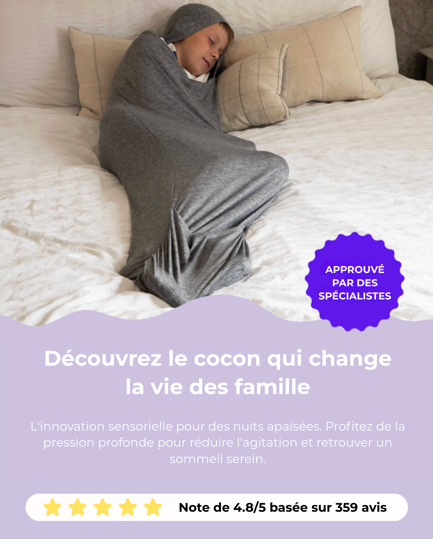 Oui. L'Ezenea Cocoon® utilise la thérapie par pression profonde pour réduire le stress. Cela aide les enfants, notamment ceux avec un TDAH ou anxieux, à s'endormir plus vite et plus profondément.